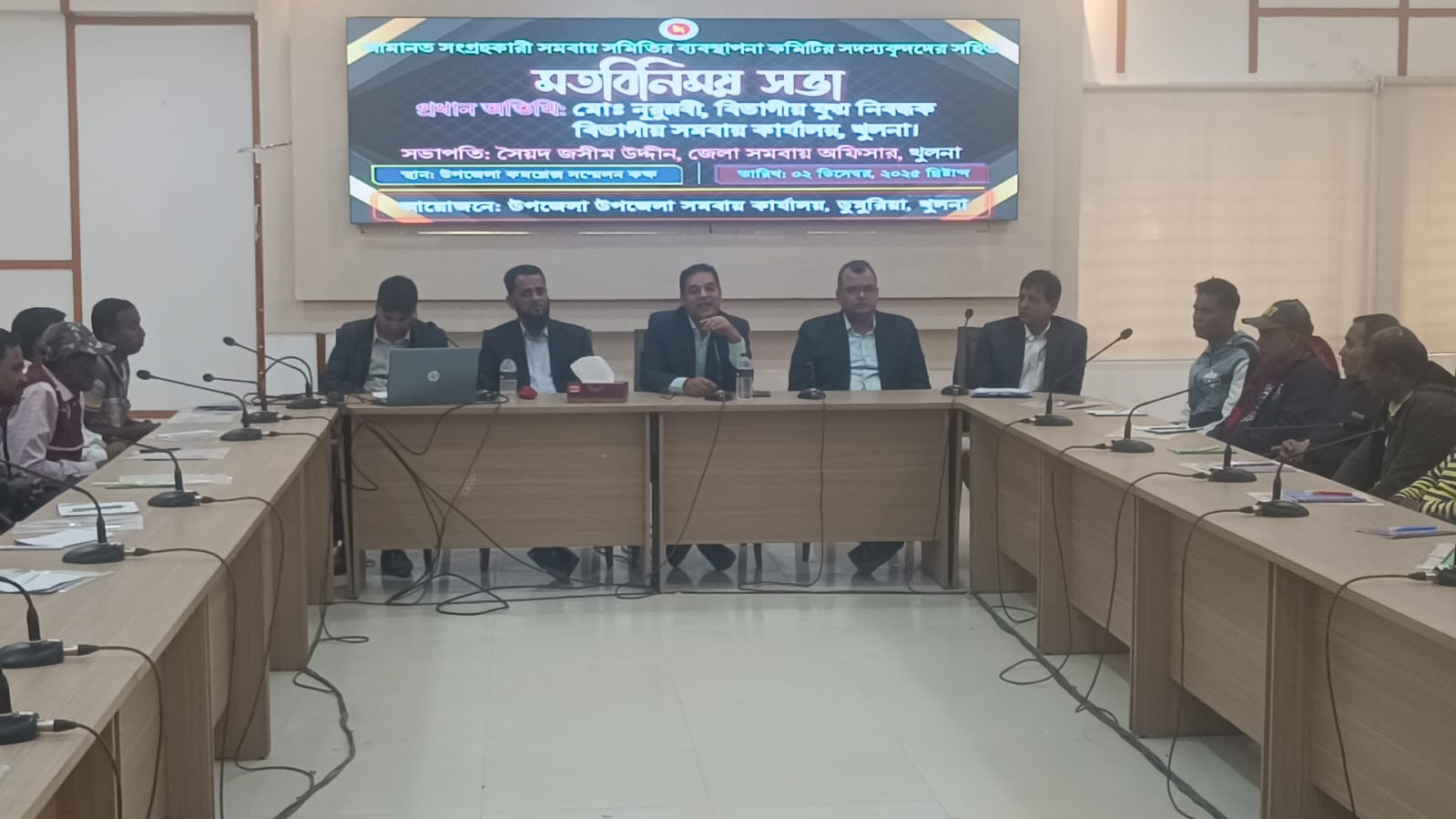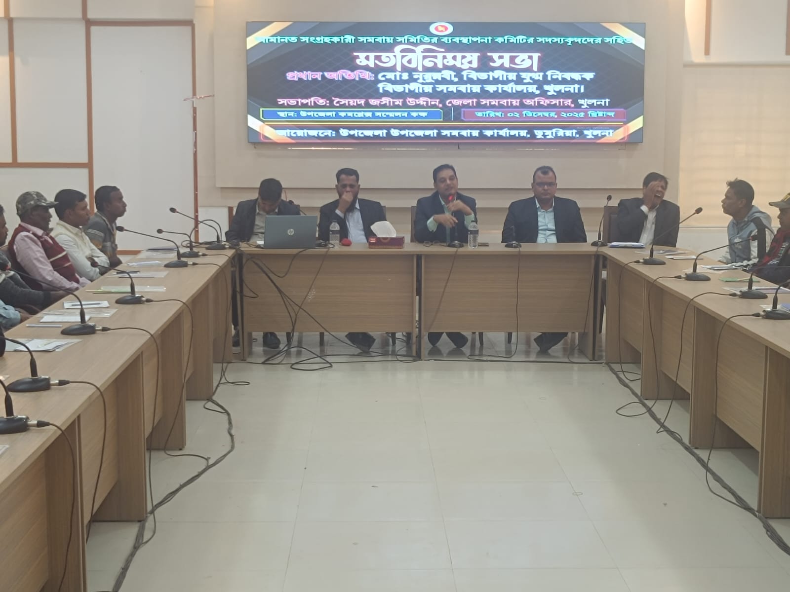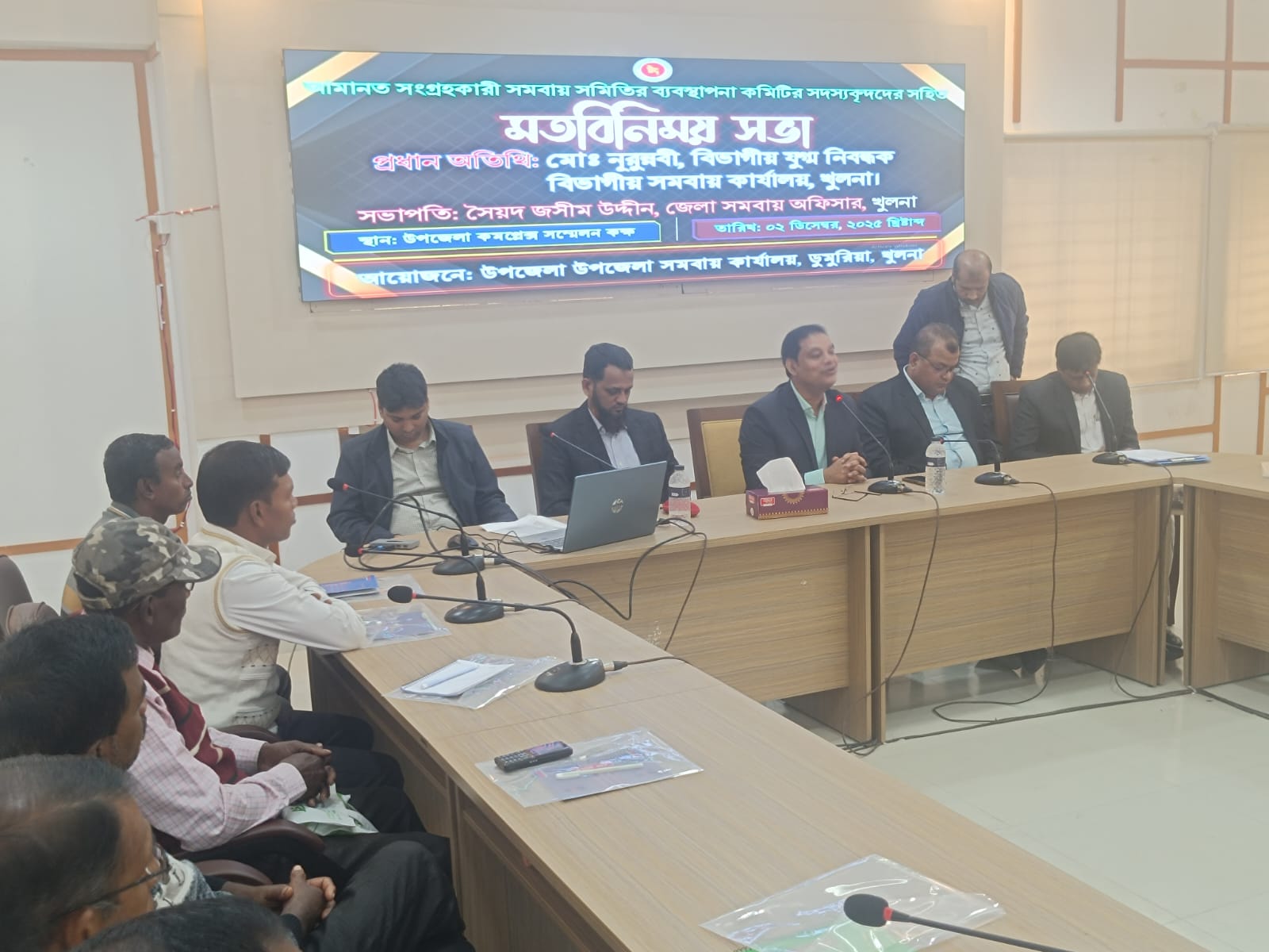 অদ্য ০২/১২/২০২৫ খ্রি. তারিখে জনাব মো:নূরুন্নবী বিভাগীয় সমবায় কার্যালয়, খুলনা মহোদয় কর্তৃক ডুমুরিয়া উপজেলার আমানত সংগ্রহকারী বিভিন্ন সমবায় সমিতির ব্যবস্থাপনা কমিটির সদস্য বৃন্দদের সহিত মতবিনিময় সভা অনুষ্টিত হয়।