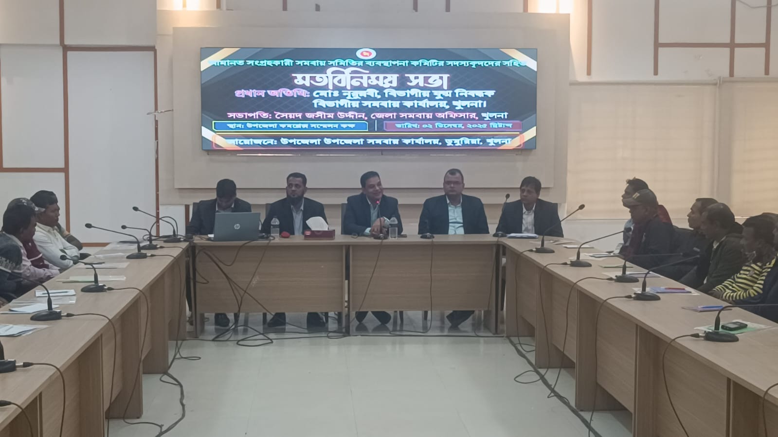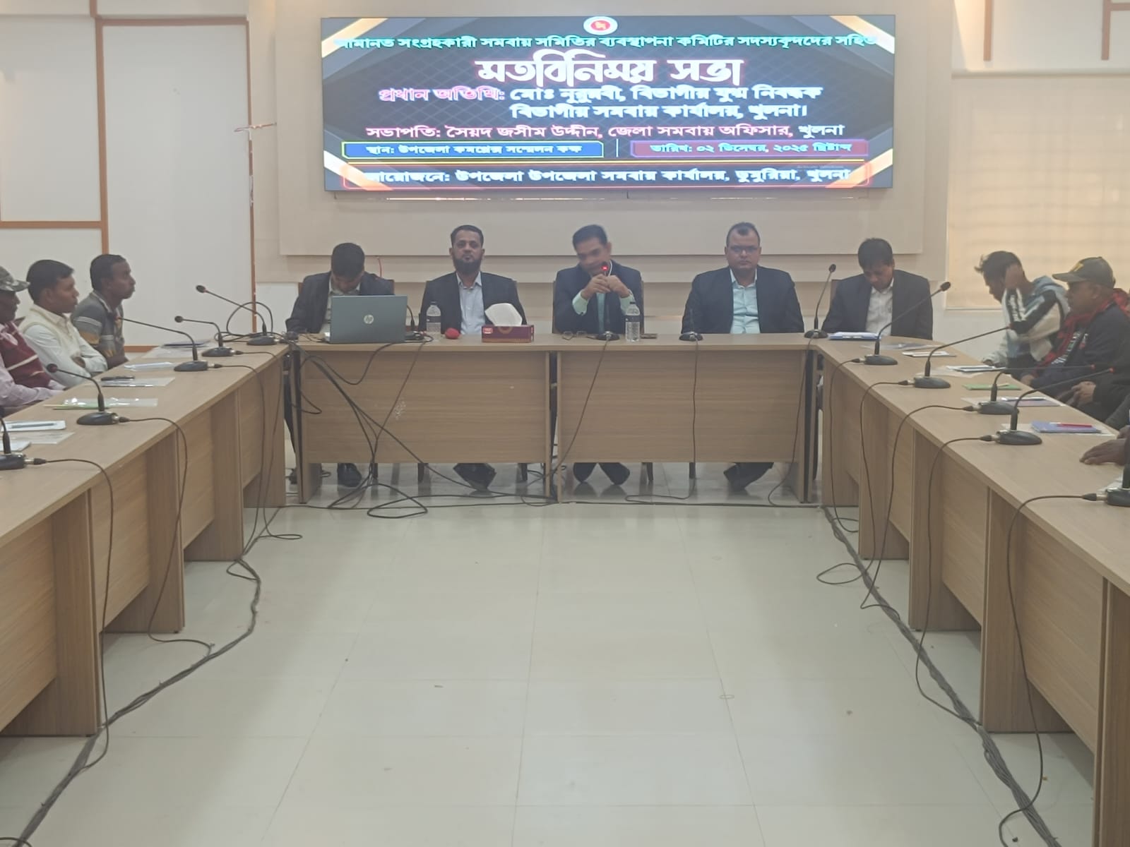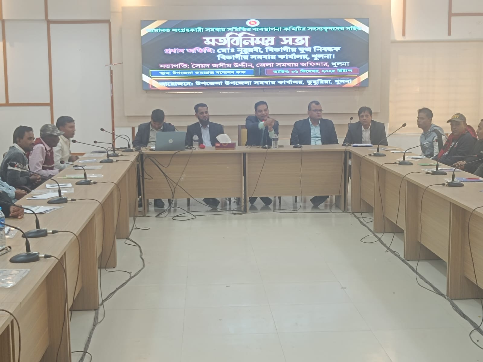 অদ্য ০২/১২/২০২৫ খ্রি. তারিখে জনাব মো:নূরুন্নবী বিভাগীয় সমবায় কার্যালয়, খুলনা মহোদয় কর্তৃক ডুমুরিয়া উপজেলার আমানত সংগ্রহকারী বিভিন্ন সমবায় সমিতির ব্যবস্থাপনা কমিটির সদস্য বৃন্দদের সহিত মতবিনিময় সভা অনুষ্টিত হয়।